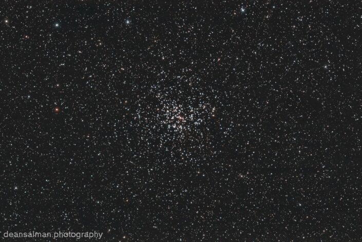 Photographing the open star clusters and other deep sky objects is usually done with a telescope and a either with a color camera or black & white with color filters. Generally, this kind of photography will require the main telescope, a guide telescope, imaging collecting software, and automation of some kind. I used ACP for automation which connects to MaximDL and FocusMax. ACP moves the telescope to the object, center it, take the exposures, and focus the telescope as needed.
